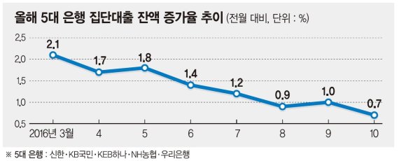 신한.KB국민.KEB하나.NH농협.우리 등 5대 은행의 집단대출 잔액도 점차 줄어드는 추세다.
