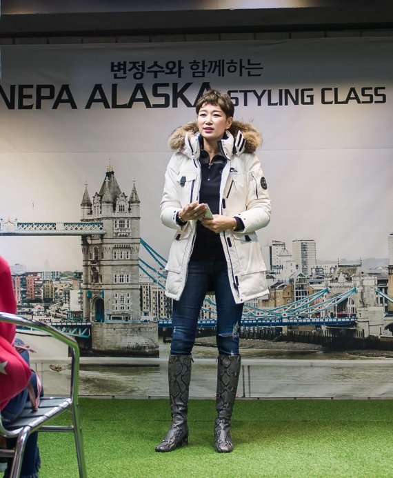 네파 VIP 멤버십 고객 및 주부 커뮤니티 회원을 비롯해 총 70여 명의 인원이 참석한 알라스카 스타일링 클래스는 패셔니스타로 주목받고 있는 배우 변정수가 스타일 멘토로 나서 네파의 알라스카 다운 시리즈를 활용한 겨울철 스타일링을 제안하는 형태로 진행됐다.