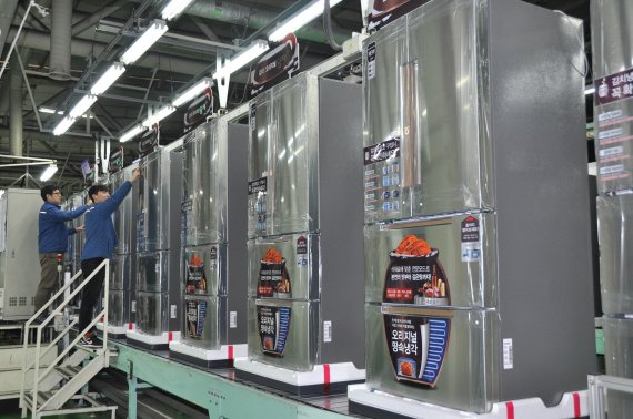 최성준 생산본부장은 "지난달부터 직원들이 하루 2교대 20시간의 근무를 소화하고 있다"며 "스탠드형을 생산하는 아산공장에서는 하루 1700대의 김치냉장고가 만들어지고 있다"고 말했다.