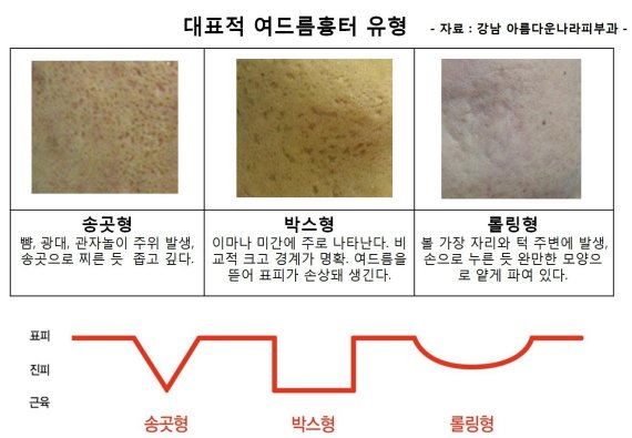 여드름 흉터는 흉터에 따라 깊이와 모양이 제각각 이어서 치료가 까다로운 대표적 피부과 질환이다. 겉으로 보면 표면이 단순하게 패여 보이지만 송곳형, 박스형, 롤링형 등 유형이 다양하다.