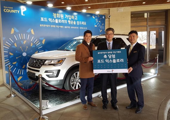 특히 이날 '2016 포드 익스플로러' 승용차 1대 당첨자 추첨 행사는 골프존카운티 임직원과 안성지역 내 경찰관이 참석한 가운데 골프존카운티 서상현 상무가 직접 당첨자를 추첨하는 공개추첨 방식으로 진행됐다. 1등 당첨자 1명에게는 '2016 포드 익스플로러' 승용차 1대를 경품으로 증정했다.