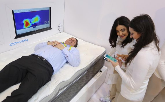 '코웨이 에어 매트리스'에는 참관객들은 직접 누워 에어셀의 움직임을 체험하기도 했다.