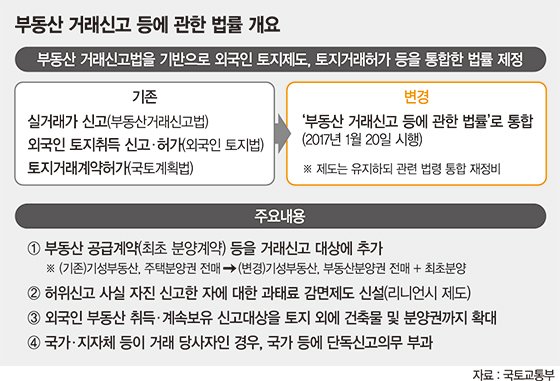국토교통부는 이 같은 내용을 담은 '부동산 거래신고 등에 관한 법률'이 제정돼 그 시행령 및 시행규칙이 20일부터 시행된다고 18일 밝혔다. 부동산 거래신고 등에 관한 법률은 부동산 거래신고법을 기반으로 외국인 토지제도, 토지거래허가 등을 통합한 법률이다. 부동산 거래신고는 투명한 거래관행 정착을 위해 부동산 거래 시 계약일로부터 60일 이내에 거래당사자가 관할 시.군.구청에 거래내용을 신고하도록 하는 제도로, 지난해 총 220만여건의 거래신고가 있었다.