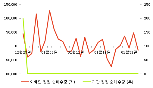 외국인 보유량 증가, 기관 변화 없음 (5일 누적)