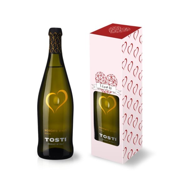 '또스띠 모스까또 다스띠 패키지'는 사랑스러운 핑크 빛과 하트 문양이 특징적으로 로맨틱하고 달콤한 밸런타인데이에 사랑스러운 분위기를 연출하고 싶은 여자친구에게 어울리는 패키지이다.