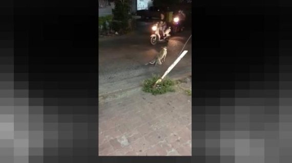 한 도로에서 포착된 이 개는 하반신을 전혀 움직이지 못한채 두 다리를 질질 끌면서 도로를 거닐고 있다.