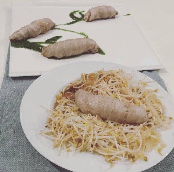 이에 김풍은 "만화가 입장에서 만화가지고 장난치면 안되겠다"며 '시금치 나무에서 애벌레 쇼를'이라는 요리를 준비했다. 김풍은 "삼겹살을 말아서 애벌레 모양으로 만들겠다. 시금치도 갈아서 애벌레가 올라갈 나무모양 데커레이션을 하겠다. 그것 만으론 약간 맛이 부족해 숙주를 볶아서 모자란 부분을 채울거다"라고 소개했다.