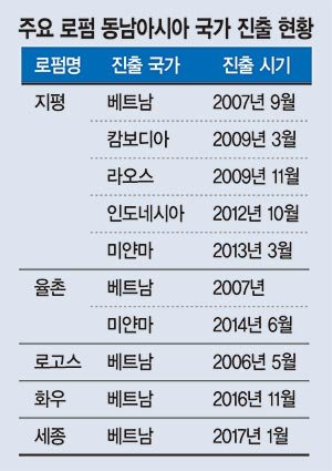 국내 로펌들은 동남아 국가 진출 기업들을 끌어오기 위해 다양한 전략을 구사하고 있다. 특히 '포스트 차이나'로 불리는 베트남에 투자하는 국내 기업이 급증하는 만큼 베트남 법률시장이 중점 타깃이다. 현재 지평, 로고스, JP, 율촌, 태평양, 세종 등 8개의 한국 로펌이 베트남에 둥지를 틀고 있다.