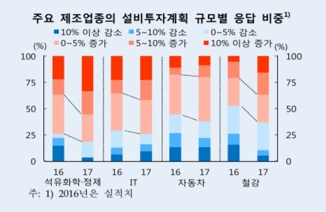 한은은 "향후 설비투자는 기존설비에 대한 유지·보수 중심의 투자가 이어지는 가운데 업황 호조를 보이고 있는 반도체와 디스플레이를 중심으로 증가할 것으로 보인다"며 "다만 보호무역주의 강화, 국내외 경제의 불확실성 확대 등이 설비 투자를 제약하는 요인으로 작용할 것"이라고 밝혔다.