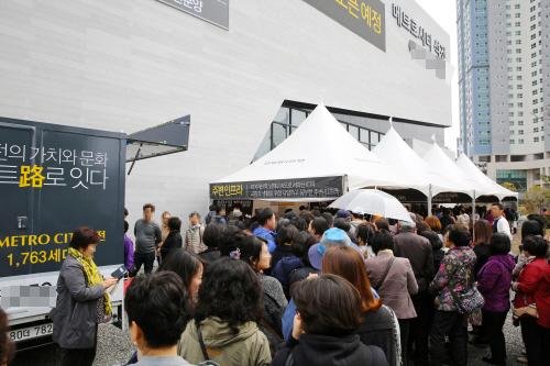 개관 첫날인 31일 견본주택 앞으로는 이른 시간부터 대기열이 형성되며 장사진을 이뤘다. 입장이