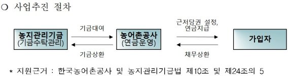 농지연금은 농촌고령화의 가속화, 고령소농의 소득문제가 부각되는 여건 속에서 소득이 충분하지 않은 농촌고령자(만65세 이상)가 소유자산인 농지를 담보로 하여 노후보장을 받을 수 있어 고령농가의 관심이 지속적으로 증가하고 있다.