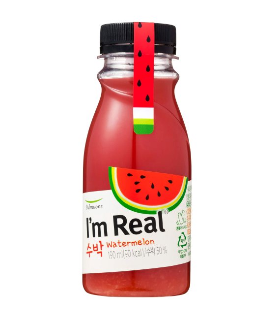 아임리얼 수박은 수박을 생 그대로 담아 언제 어디서든 달콤한 수박을 맛있게 마실 수 있는 제품이다. 기존 아임리얼 제품과 동일하게 물 한 방울은 물론 어떤 첨가물도 넣지 않아 생과일의 맛과 영양을 그대로 즐길 수 있다. 제품 패키지에도 빨간 수박의 한 단면을 감각적으로 디자인해 수박 그대로의 생착즙 주스를 강조하고 시각적인 즐거움과 만족도도 높였다.