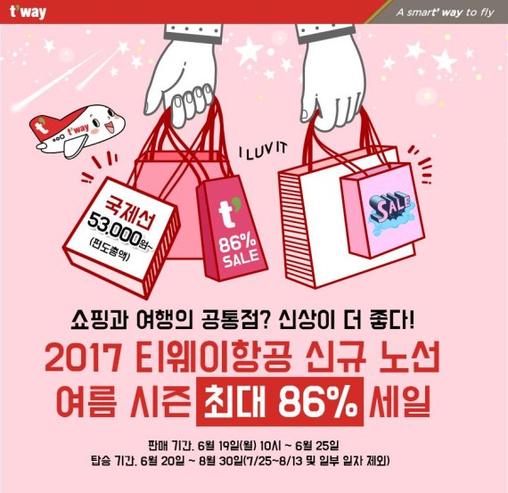 티웨이항공은 오는 19일 오전 10시부터 25일까지 홈페이지와 모바일 앱을 통해 최근 신규 취항 노선을 특가로 판매한다고 16일 밝혔다.