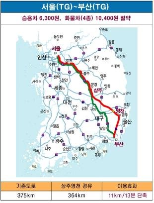 고속도로를 이용해 서울에서 울산, 포항, 부산 방면으로 가는 최단 경로가 바뀐다.