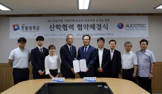 지난달 29일 한밭대 산·학·연협동관에서 열린 협약체결식에는 한밭대 산학협력단 이재흥 단장과 오코텍 코리아 이영진 대표를 비롯해 양측 관계자 10여명이 참석했다. 한밭대는 이번 협약 체결을 계기로 4차 산업혁명 시대의 산업구조 변화에 맞는 스마트팩토리 분야 전문기술인력의 양성·공급을 목표로 교육운영에 필요한 교육과정개발, 교육인프라구축, 기술협력 등의 분야에서 산학협력을 추진하게 된다.