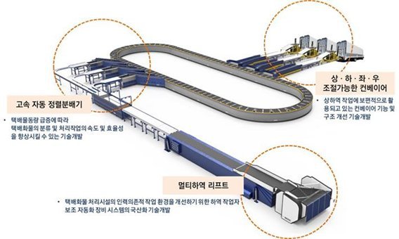 국토부가 추진하는 '택배 상·하차 자동화 기술 연구개발(R&D)'은 상·하차, 분류, 배송 등 작업별 특성을 고려해 맞춤형으로 추진되며 내년부터 2022년까지 약 130억원의 자금이 투입될 예정이다. 상차의 경우 상·하·좌·우 조절이 가능한 컨베이어를 사용해 근로자들이 직접 택배를 싣는 작업이 대폭 줄어들게 된다. 하차의 경우 제품인식 센서가 탑재된 반자동 리프트가 택배상자를 차량에서 내리는 등 작업 전반에 걸쳐 자동화가 추진된다.
