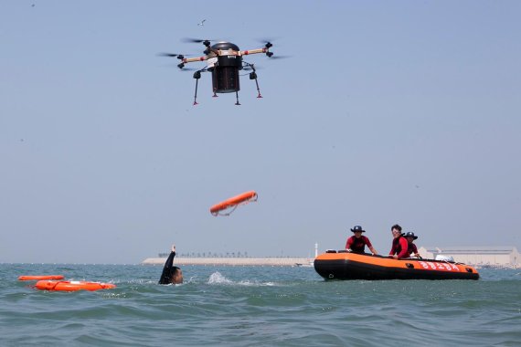 실제 이날 한 남성이 가상 시나리오로 바다에서 허우적대는 모습을 연출하자, 상공에서 정찰을 돌던 드론이 카메라에 잡힌 조난 현장을 곧바로 인근 이동형 관제센터로 보냈다. 동시에 또 다른 인명구조드론은 조난자 위치로 이동해 구명튜브를 내려 보내줬다. 구조요원이 올 때까지 물에 빠진 남성이 튜브에 몸을 맡겨 버틸 수 있도록 지원한 것이다. 이때 인명구조드론에 장착된 고성능 스피커에선 “구조가 이뤄질 때까지 침착하십시오”라는 안내음성이 나왔다.