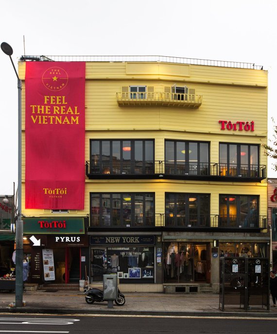 이색 건물들이 많은 이태원에서도 눈길을 사로잡는 4층짜리 동남아풍의 노란색 건물에 입점한 '또이또이베트남'이다.