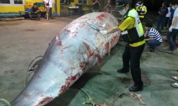 울산지방경찰청은 1일 불법 포획한 고래를 유통하고, 고래유통증명서를 위조한 혐의(위계에 의한 공무집행방해 등)로 고래고기 음식점 업주 A씨를 구속했다. A씨는 지난해 5월 고래불법포획 증거물로 압수된 고래고기를 울산지검으로부터 되돌려 받을 당시 위조된 고래유통증명서를 제출한 혐의를 받고 있다.