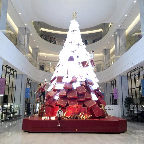 현대백화점은 오는 12월6일 판교점에 국내 11번째 까르띠에 부띠끄를 오픈한다고 7일 밝혔다. 현대백화점은 입점을 기념해 7일부터 다음달 31일까지 판교점 1층 중앙광장에 까르띠에 로고와 표범 장식물로 꾸민 가로 7m, 세로 10m 크기의 대형 크리스마스 트리를 운영한다.