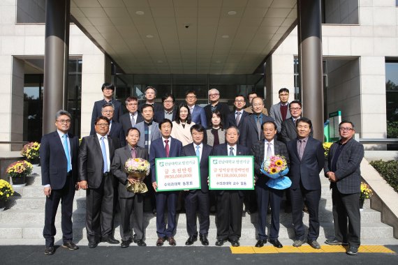 【광주=황태종기자】전남대학교 수의과대학 교수와 동문들이 모교에 대학발전기금을 기부했다.