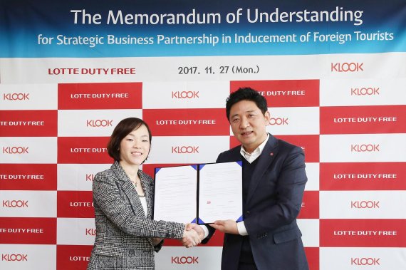 롯데면세점은 지난 27일 서울 잠실 롯데월드타워 회의실에서 클룩사와 마케팅 고도화를 위한 업무협약(MOU)을 체결했다고 28일 밝혔다.