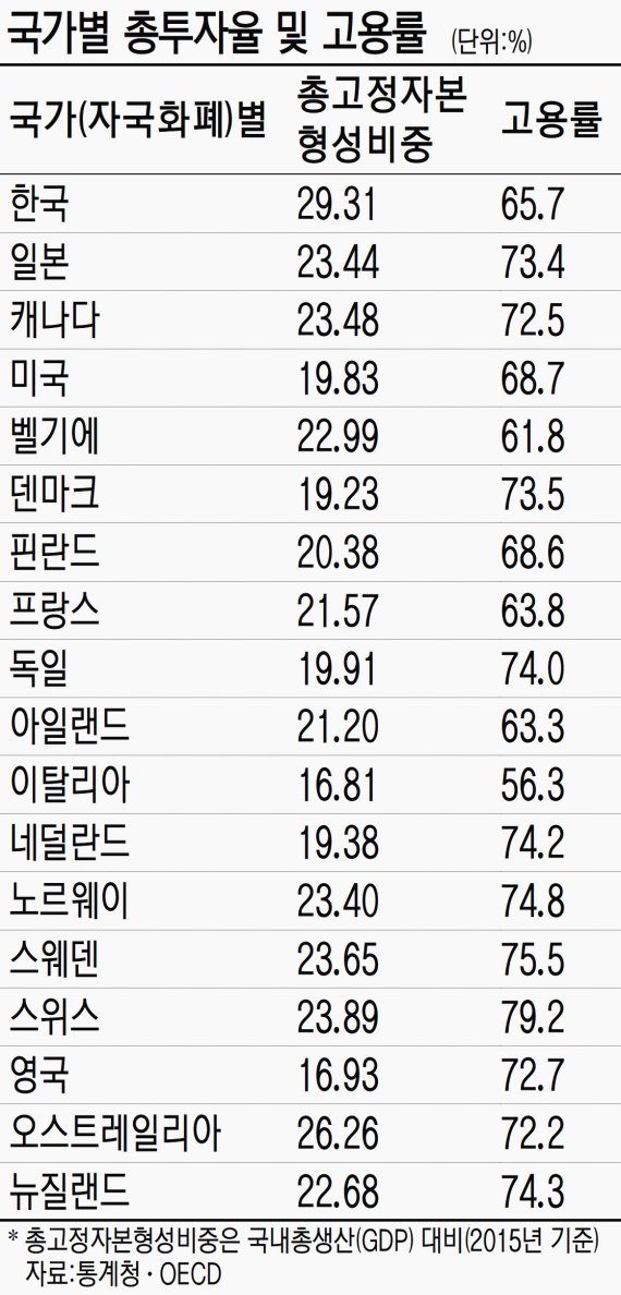 GDP대비 투자 29.31%.. 고용률은 65.7%에 그쳐