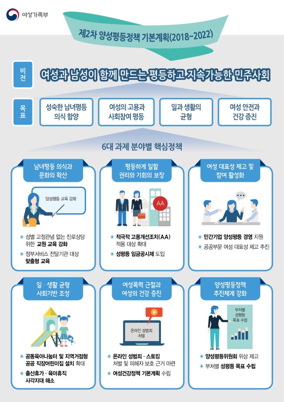 여성가족부는 20일 세종대로 정부서울청사에서 브리핑을 열고 이같은 내용의 '제2차 양성평등정책 기본계획(2018~2022)'을 발표했다.