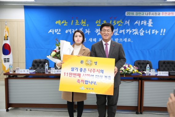 전남 나주시(시장 강인규)는 지난해 12월 27일 현재 인구 11만명을 달성, 지난 2000년 이후 18년 만에 다시 11만명을 넘어섰다고 11일 밝혔다.