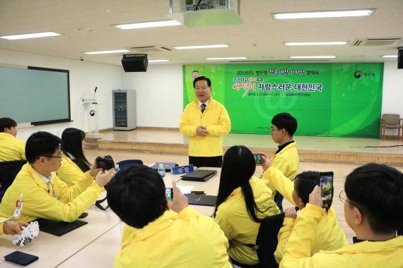 이날 병무청은 기 청장이 충북 보은군 병무청 사회복무 연수센터에서 청춘예찬 기자단을 만나 '소통의 메신져' 역할을 당부했다고 밝혔다.