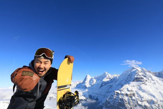 그는 ‘007 여왕 폐하 대작전’의 로케이션 장소인 쉴트호른에서 제임스 본드가 스릴 넘치는 스키 추격전을 보여 주었던 곳에서 스노으보드를 체험했다. 고등학교 때 이후로 스노우보드는 처음이었다. 처음에는 좀 긴장되었지만 전문 강사의 안내로 처음 아찔한 구간을 내려오니, 알프스 명봉들이 파노라마 장관을 펼쳐며 그를 맞았고 그 역시 여러 차례 탈 수록 더 즐거움을 느꼈다.