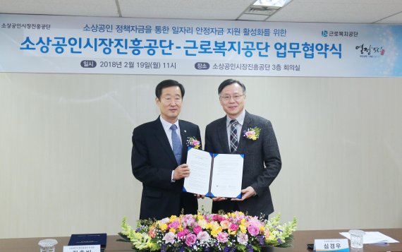 소상공인시장진흥공단은 19일 대전 보문로 본부에서 근로복지공단과 ‘일자리 안정자금 지원 활성화를 위한 소상공인 정책자금 연계 지원’ 추진을 위한 업무협약을 체결했다고 밝혔다.