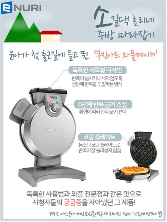 8일 에누리 가격비교에 따르면 효리네 민박2에서 윤아가 사용해 화제가 된 쿠진아트 와플 기계(WAF-V100)는 2월 매출이 전월대비 40배 가량 증가했다. 특히 해당 상품은 방송에 나온 2월 4일과 2월 18일에 매출 껑충 뛰었다. 와플 기계와 함께 집에서 간단하게 만들어 먹을 수 있는 와플 믹스도 판매가 늘었다. 와플 믹스 상품의 지난달 판매량은 전월대비 117%가 늘었고 매출은 같은기간 40% 가량 증가했다.