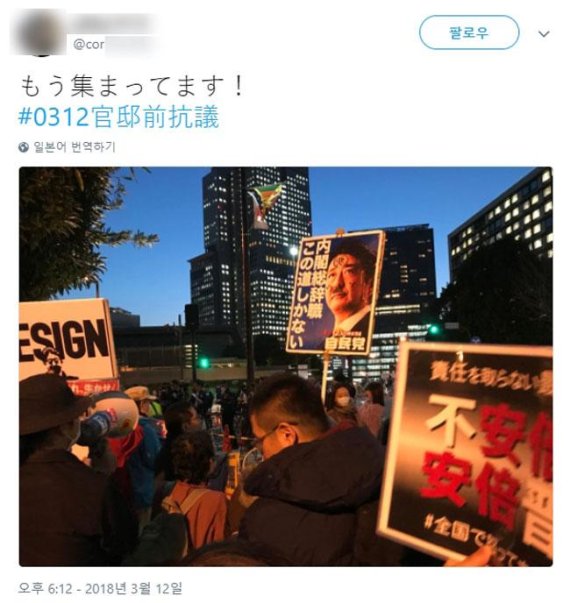 아베 신조 일본 총리가 '사학 스캔들'에 대해 대국민 사과를 했음에도 불구하고 성난 민심이 쉬이 사그라지지 않고 있다. 일본 시민들은 도쿄 시부야구에 있는 총리 관저에 몰려들어 내각 총사퇴를 촉구하는 집회를 여는 한편, SNS에선 아베 퇴진을 촉구하는 '#RegaindemocracyJP'와 '#0312官邸前抗議' 해시태그가 확산되고 있다.