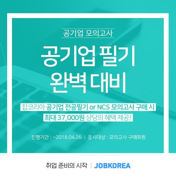 한편 잡코리아는 공기업 모의고사 런칭 이벤트를 다음달 26일까지 진행한다. 이벤트 기간 중 모의고사를 구매, 응시한 회원을 대상으로 서비스 무료 쿠폰을 100% 증정한다. 또 총 1천명에게는 추첨을 통해 공취달 NCS대비 수험서와 스타벅스 카페라떼를 증정한다.