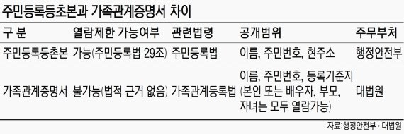등본과 달리 열람제한 못해 거주지 노출 2차피해 우려