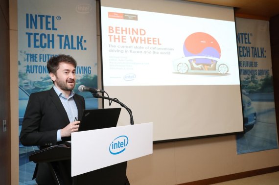 이코노미스트 인텔리전스유닛(EIU) 아시아·태평양 지역 에디터 마이클 골드는 19일 서울 코엑스 인터콘티넨탈 호텔에서 열린 ‘인텔 테크토크: 자율주행의 미래’ 관련 간담회에서 “한국은 자율주행차 기술개발에 대한 투자를 다소 늦게 시작했다”며 이같이 밝혔다. 반면 미국과 중국은 글로벌 정보기술(IT) 및 완성차 업체를 중심으로 자율주행 시대를 주도하고 있다.