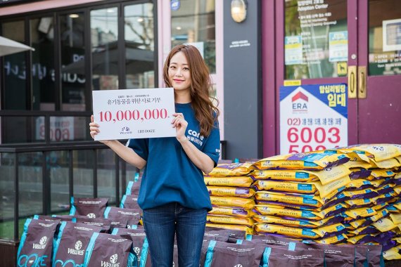 동물권단체 케어는 배우 김효진이 케어 입양센터 답십리점에 사료 1톤을 기부했다고 5일 밝혔다. 이번 사료 기부는 김효진과 유한양행, 반려동물 전문 매거진 라이프앤도그가 뜻을 모으며 성사됐다. 케어 측에 전달된 사료는 유한양행 측에서 제공한 프리미엄 사료 웰니스로, 총 무게 1톤(약 1000만원)에 달한다.