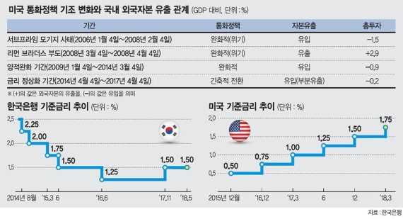 지난 2008년 금융위기 이후 제로금리를 유지했던 미국의 통화당국은 2015년 12월 이후 지금까지 정책 금리를 25bp(1bp=0.01%포인트)씩 여섯 차례 인상했다. 올해도 미국의 금리인상이 이어질 것으로 전망된다.