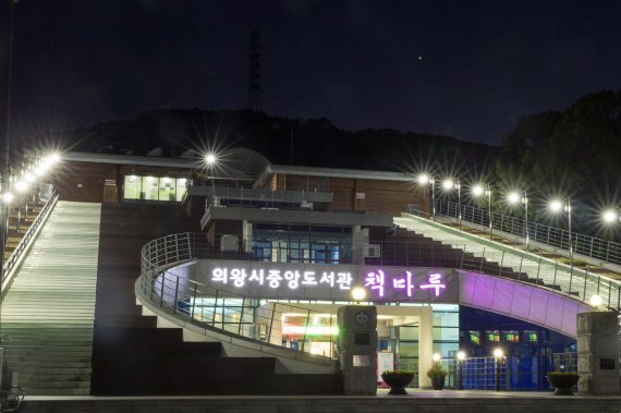 [의왕=강근주 기자] 의왕시 중앙도서관 ‘책마루’가 아름다운 야경을 뽐내고 있다. 숲을 배경으로 한 책마루 도서관은 국내 친환경 건축물로 명성이 높다. 이런 곳에서 책장을 넘기면 독서삼매경은 결코 구두선이 아닐 게다. 초여름 피서지로도 책마루 도서관이 애용되면 의왕시 인재 양성은 완성된 셈이다.