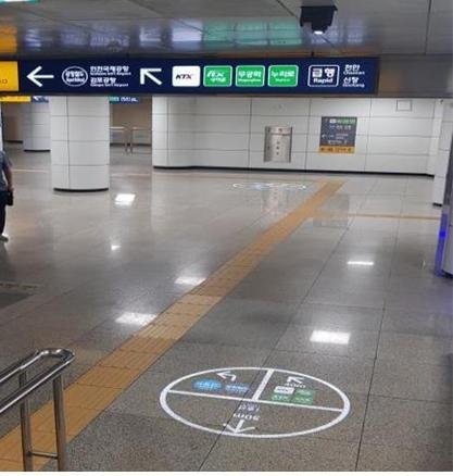 【대전=김원준 기자】서울역에서 열차와 전철을 갈아탈 때 바닥의 발광다이오드(LED)안내표지만 보고도 누구나 쉽게 환승할 수 있게 됐다. 코레일은 정확하고 빠른 환승 안내를 위해 서울역 열차·전철 간 환승통로에 LED 바닥투시형 안내표지인 ‘로고라이트(Logo-Light)’를 설치했다고 18일 밝혔다.
