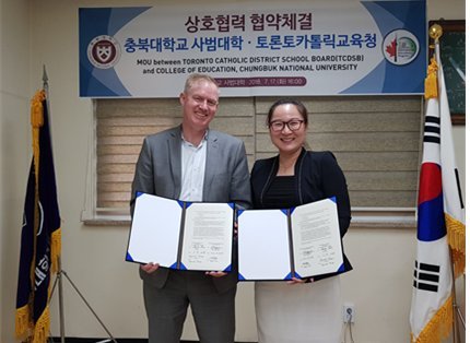 【청주=조석장기자】 충북대학교 사범대학은 17일 충북대 사범대학장실에서 토론토 카톨릭교육청(TCDSB)과 교류협력을 위한 업무협약을 체결했다고 18일 밝혔다.