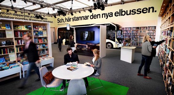 스웨덴 광역단체인 예테보리시의 시립 도서관 건물 안에는 재밌는 문구가 쓰여있다. 2015년부터 시는 전기버스를 운영하면서 소음이 적고 배기가스 배출을 안하는 특성을 강조하기 위해 도서관 건물 안에 버스정류장을 설치하는 아이디어를 냈고 현재 이 정류장으로 전기버스가 계속해서 운행 중이다. 시립도서관 내부로 전기자동차가 들어와 정차하고, 손님을 실어나간다. 버스가 조용하면 여러가지 다른 일들을 할 수 있다는 것을 부각시키기 위해 버스 안에서 유명 가수의 공연을 갖기도 했다.