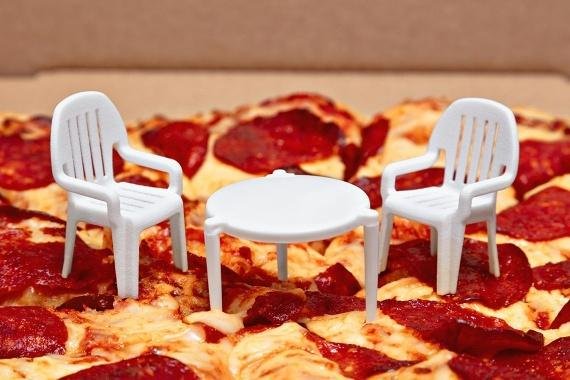 보스턴 피자는 이 고정핀이 어떻게 보면 작은 테이블 모양을 하고 있다는 것에 착안, 같은 크기의 플라스틱 의자를 포함했다. 그리고 '보스턴 피자 파티오 세트'라는 이름까지 붙여 판매하고 있다.