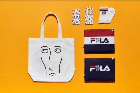 휠라 X 우왁굳 콜라보 에디션은 휠라의 인기 어글리 슈즈 중 하나인 '디스럽터'와 드리프터 슬라이드, 반팔 티셔츠와 맨투맨, 후드 집업에 에코백, 양말, 휴대전화 케이스까지 풀 컬렉션으로 구성됐다.