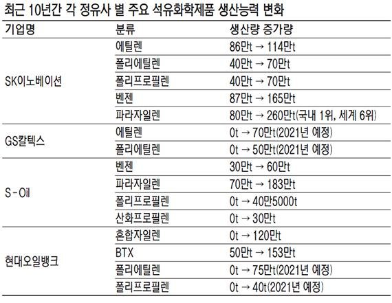 정유업계 관계자는 "정유업계는 시황이 좋아도 영업이익률이 1% 이내인 경우가 대부분이지만 화학사업은 영업이익률이 10%대에 달해 수익성이 좋다"며 "고부가가치 화학제품군에 대한 적극적 투자를 통해 새로운 수익 구조를 창출하는 노력은 계속될 것"이라고 설명했다.