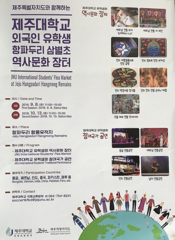 [제주=좌승훈 기자] 제주대학교(총장 송석언) 외국인 유학생들이 오는 8일 제주시 애월읍 항파두리 항몽유적지에서 '역사문화 장터' 행사를 개최한다.