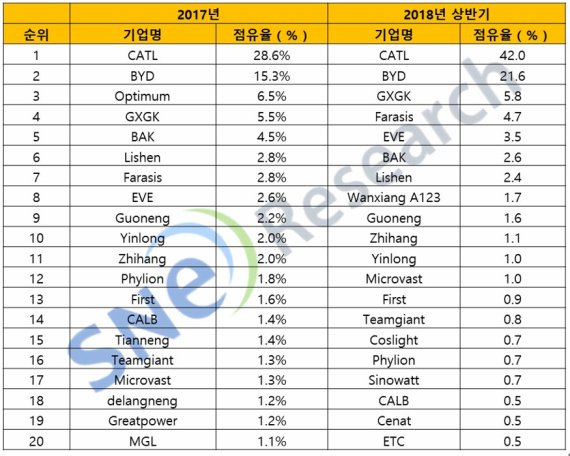 한편, 앞서 중국 내 전기차 배터리업계의 구조조정이 가속화되면 LG화학, 삼성SDI, SK이노베이션 등 국내 업체에 기회가 될 것이란 전망이 제기되기도 했지만, 국내 전기차 배터리 제조 3사가 만든 배터리를 탑재한 전기차는 지난 6일 중국 공신부가 발표한 '2018년 제9차 신에너지차 보급 응용 추천 모델 목록'에 이번에도 이름을 올리지 못했다.