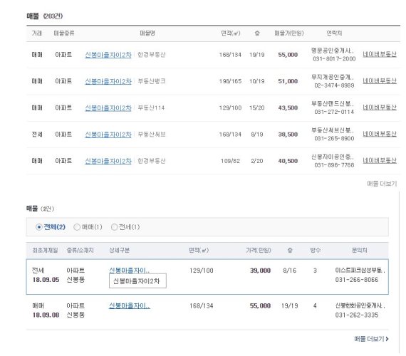 네이버 부동산의 경우 실제 가격보다 낮은 미끼 매물, 이미 계약이 성사된 허위 매물 등이 많다. 실제 네이버 부동산 포탈에 '서울 여의도 장미 아파트(총 196가구)'를 검색하면 총 50건의 매물이 검색된다. 하지만 '다음'에서는 어떤 매물도 검색되지 않는다. 경기 용인 수지의 신봉자이2차 아파트도 네이버는 총 203건의 매물, 다음은 2건으로 차이가 크다.