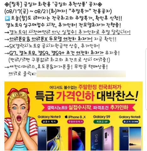16일 경찰에 따르면 휴대폰 판매업체 A사 대표 김모씨(36)는 회원수 10만명 가량의 네이버 카페 '스OO아', '모OO타' 등을 비롯해 '전국OOO특가폰', '오OO특가폰' 등 여러 개의 밴드를 관리하면서 고객들을 유치했다. 갤럭시S9 28만원, 갤럭시노트9 57만원 등 최신 스마트폰을 전국 최저가에 판매한다고 하니 소비자들 입장에서는 매력적인 조건이었다.